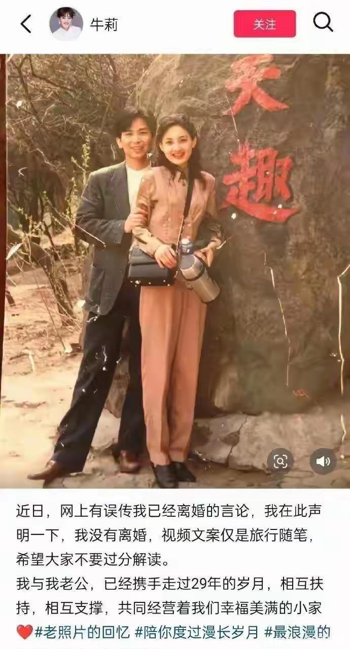 性格直爽的牛莉当即在社交账号上辟谣,还晒出年轻时与老公的合照,力证婚姻和睦。这般恩爱默契的夫妻,却被不实传闻困扰,也让网友们直呼“离谱”。