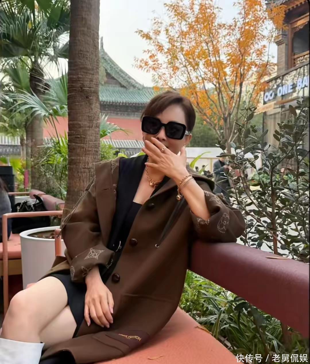 53岁牛莉近照惊艳!穿4万LV大衣露腿,富商老公宠妻不手软